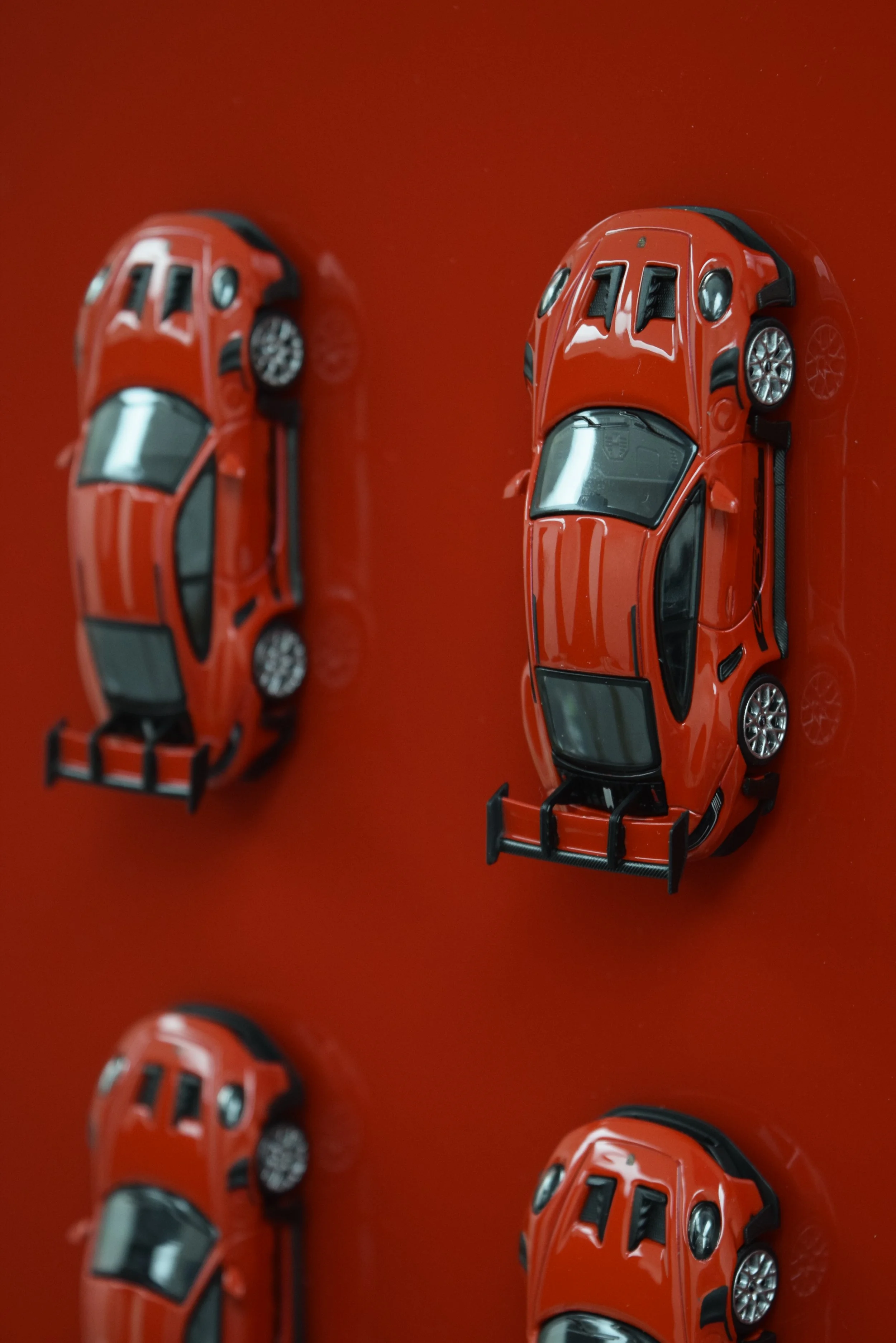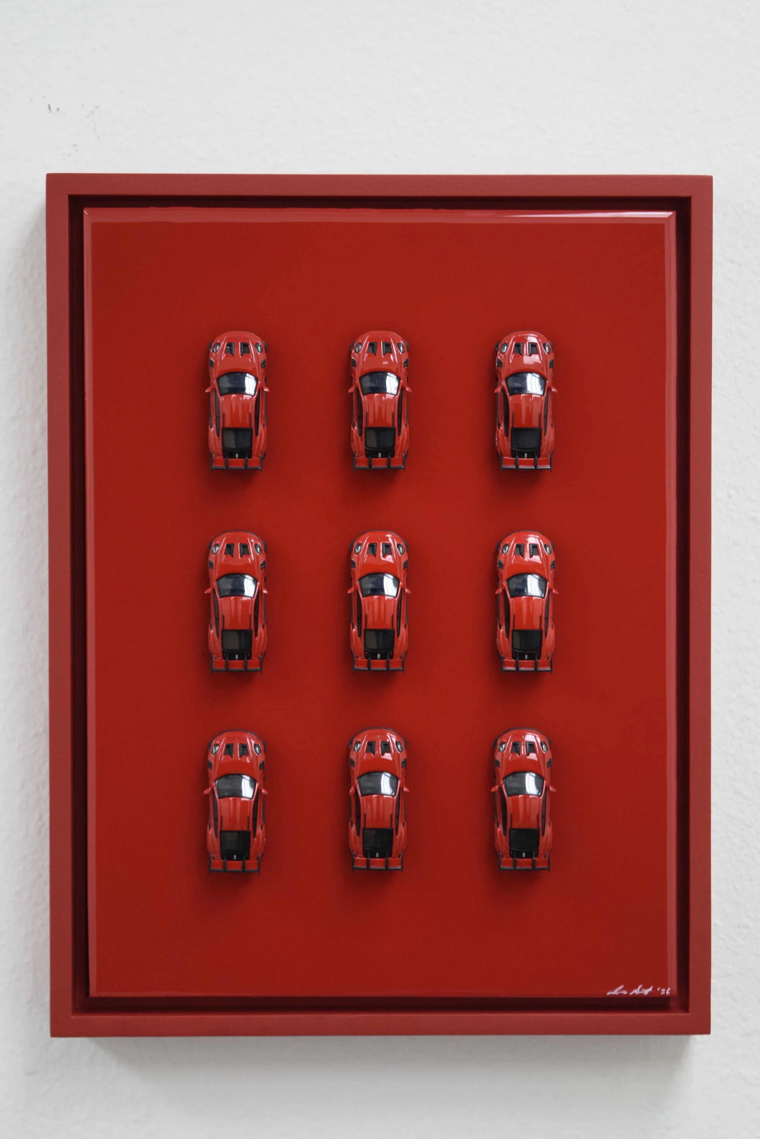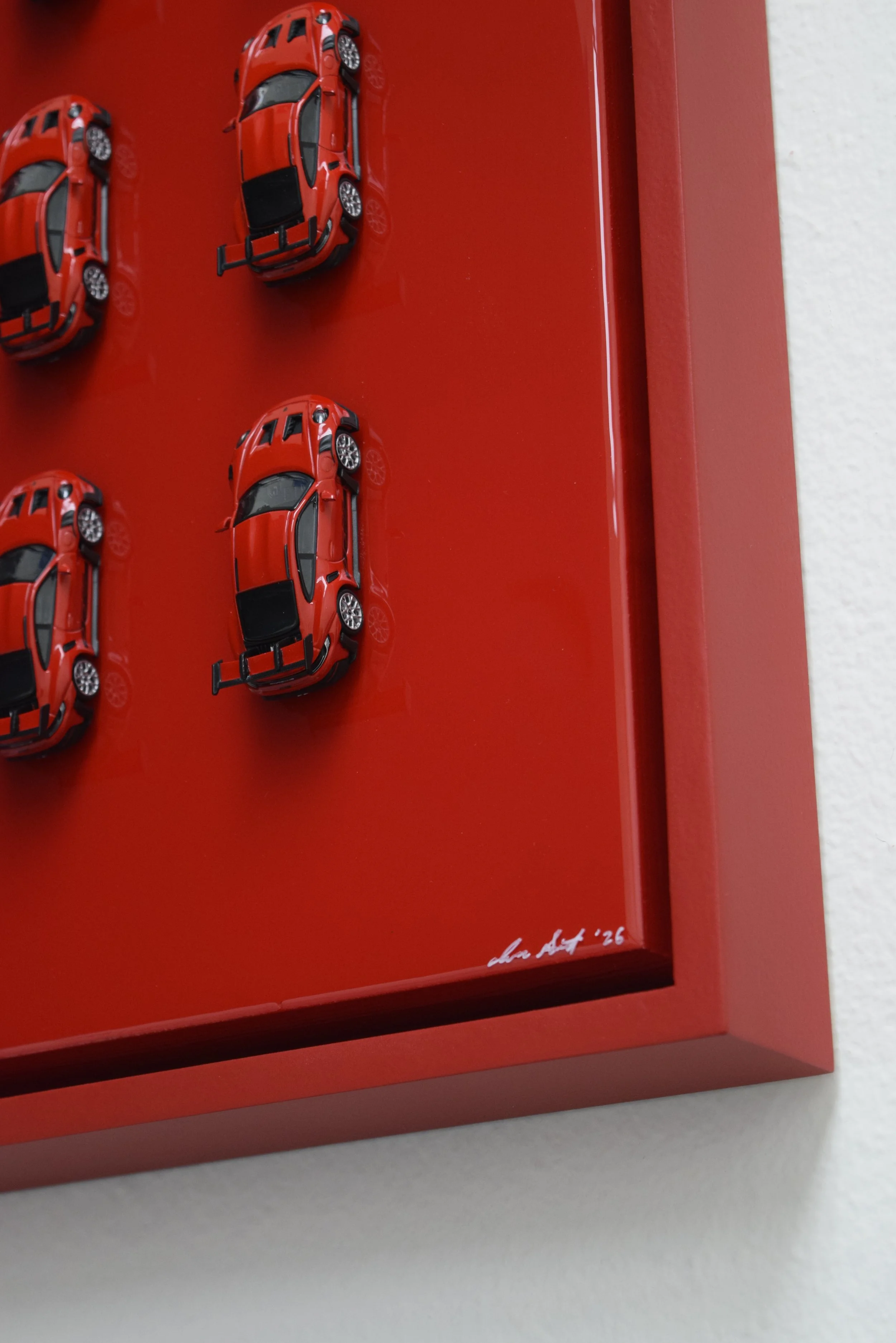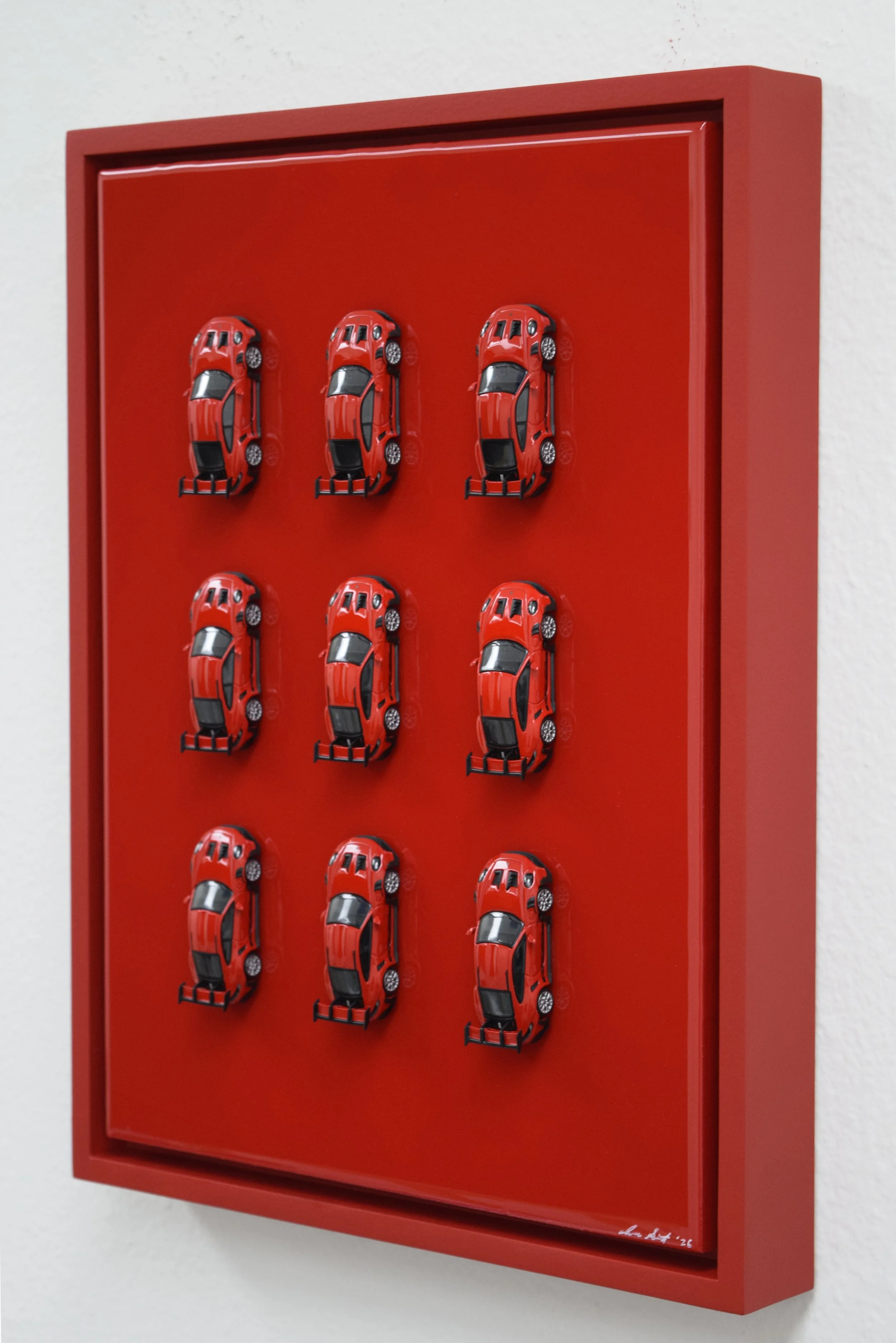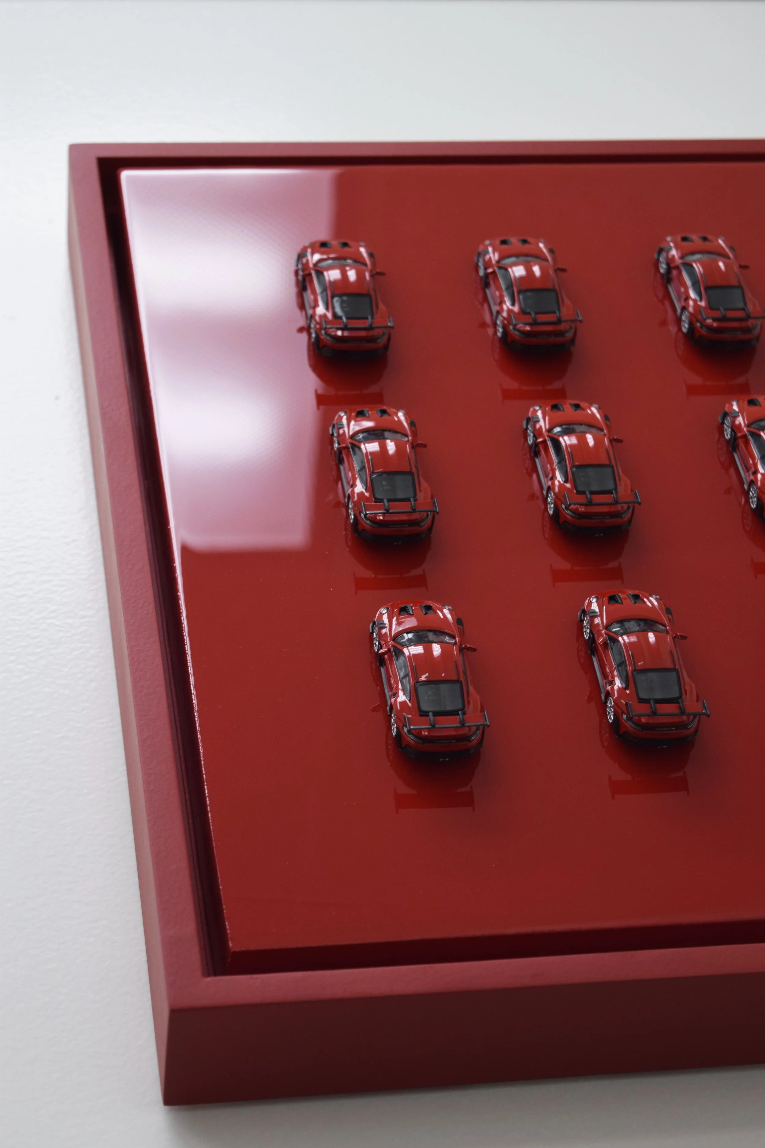 Mounted in custom-painted Porsche Guards Red floater frame
